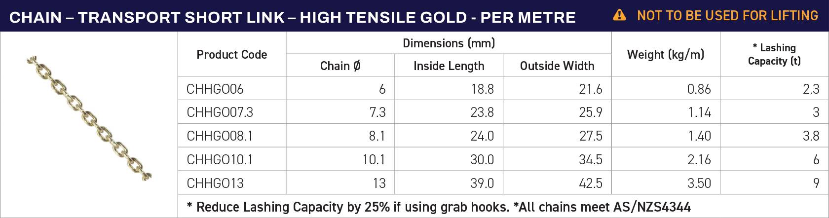 Transport Short Link Chain – High Tensile Gold. Sold by the metre.